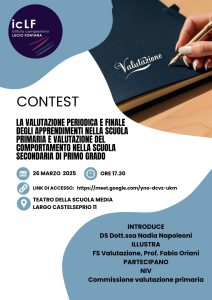 Vi invitiamo a partecipare al contest che si terrà il 26 marzo 2025 alle ore 17:30, durante il quale verranno trattati temi fondamentali riguardanti la valutazione periodica e finale degli apprendimenti nella scuola primaria e la valutazione del comportamento nella scuola secondaria di primo grado. L’incontro sarà un’occasione importante per approfondire queste tematiche e conoscere le nuove modalità di valutazione. Sarà possibile seguire l’incontro online tramite il link di accesso: https://meet.google.com/yno-dcvz-ukm